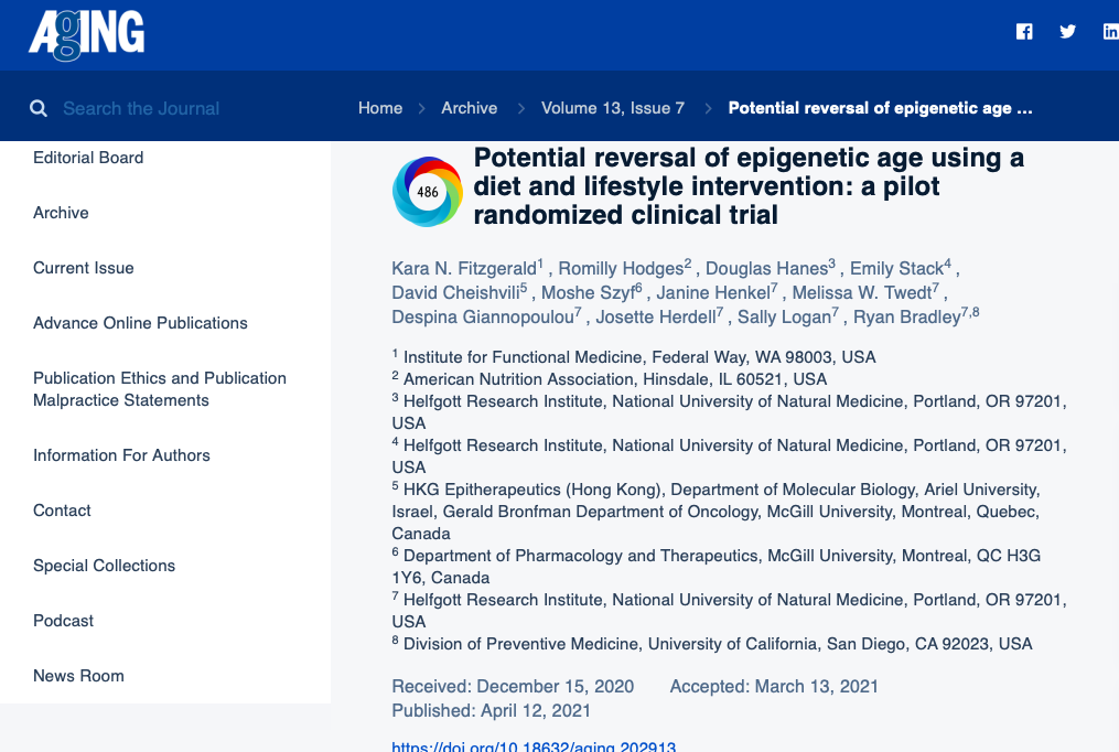 Biological age reversal Of 3-years in just 8-weeks using nutritional strategies alone; being twice as effectiveness as a year of the next best pharmaceutic or nutritional supplements plus lifestyle approaches similarly achieved.