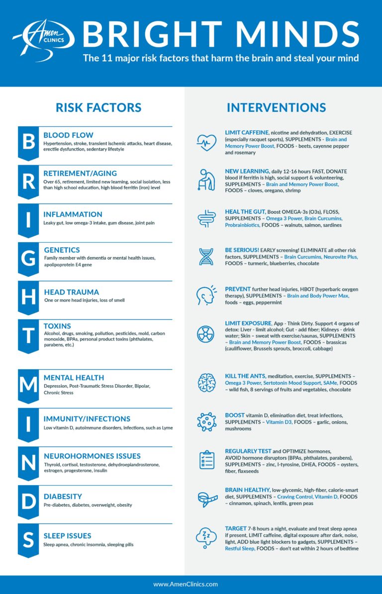 5. Learning and gradually correcting all pertinent BRIGHT MINDS factors (an Amen Clinic based foundation approach; as shown below).