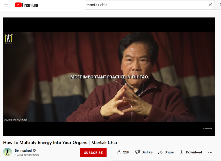 One of the few full length videos available online from prominent tai chi/qi gong master Mantak Chia, who has offered the world tremendous resources and gifts into these ancient practices, taoist and related subjects. One of many noteworthy masters - and only to win the China based qi gong master of the year twice - in these fine often secret lineage-based practices now spreading more freely worldwide based on practical health benefits (with similar benefits to yoga although more suitable to some including those in need or preferring standing rather than floor based mindful movement).