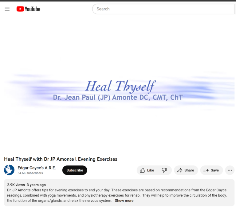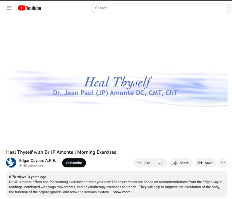 Based on the important holistic health and spiritual Christ-based work of Edgar Cayce (i.e., the infamous "sleeping prophet," mystic, American Medical Association described "founder of holistic medicine..."). A series of morning and evening exercises suitable for all individuals that are auspiciously similar to a number of practices listed above. Video is conducted by a chiropractic doctor - one of the thousands of medical practitioners plus hundreds of thousands to millions of people that have been positively impacted by this work - spreading worldwide unto modern day with roots in early 1900s southeast America.